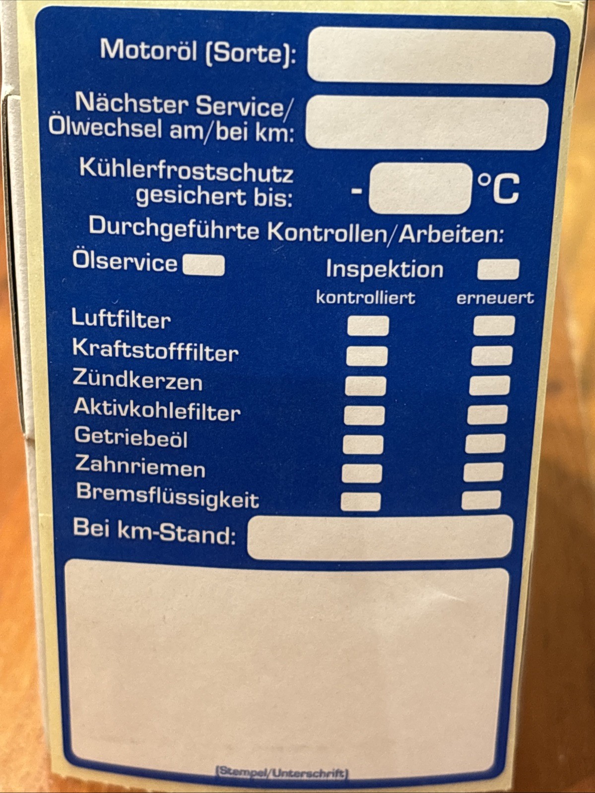10x Aufkleber: Inspektion Serviceaufkleber Motoröl Filter Zündkerzen Zahnriemen