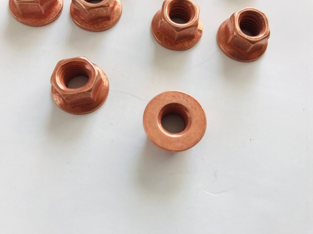 12x Kupfermuttern M8 für Abgaskrümmer Auspuff – selbstsichernd – verkupfert