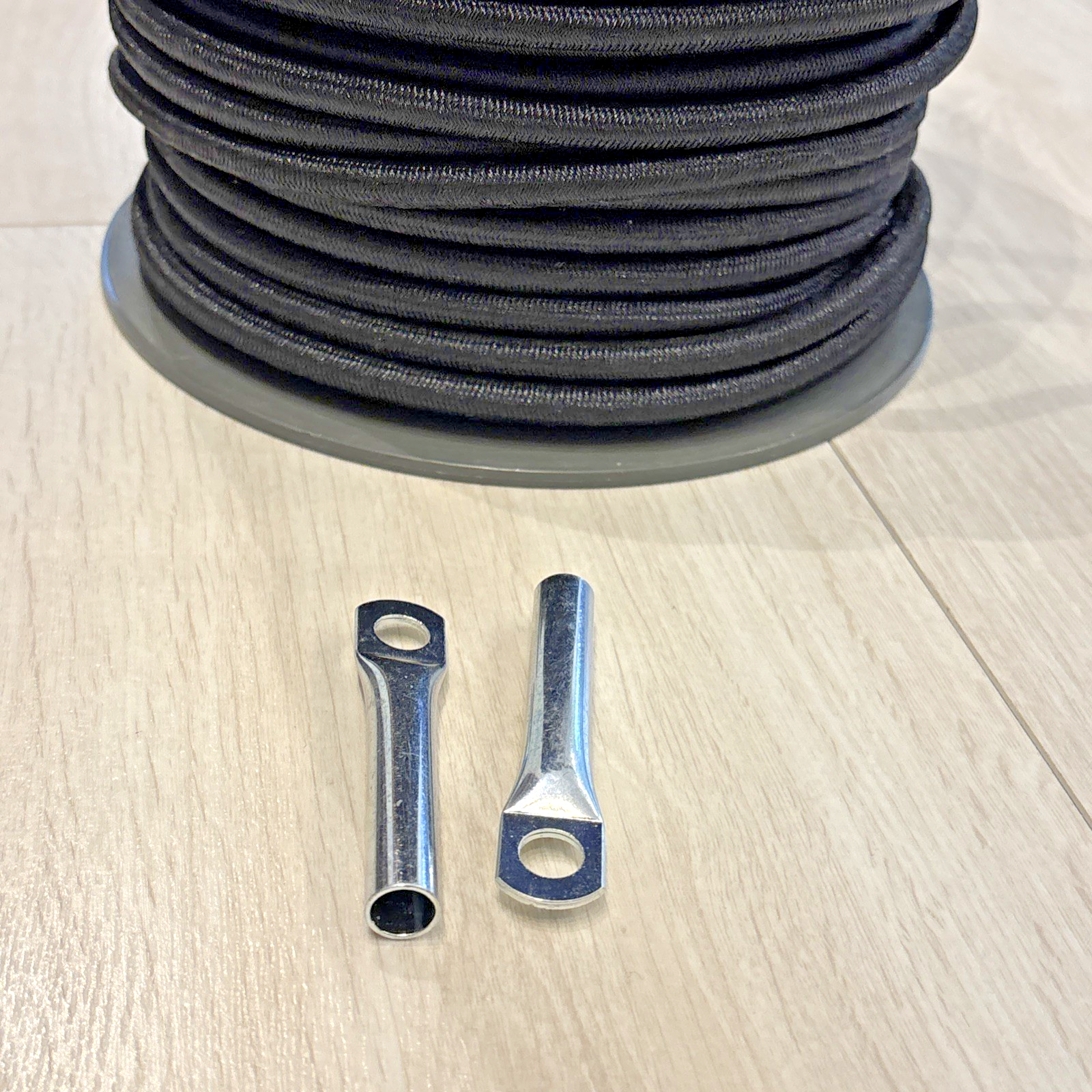 Wir liefern die bestellte Menge des Expanderseils in einem Stück inkl. 2x Seilendverschlüsse. Einfach nur noch verpressen, fertig.
