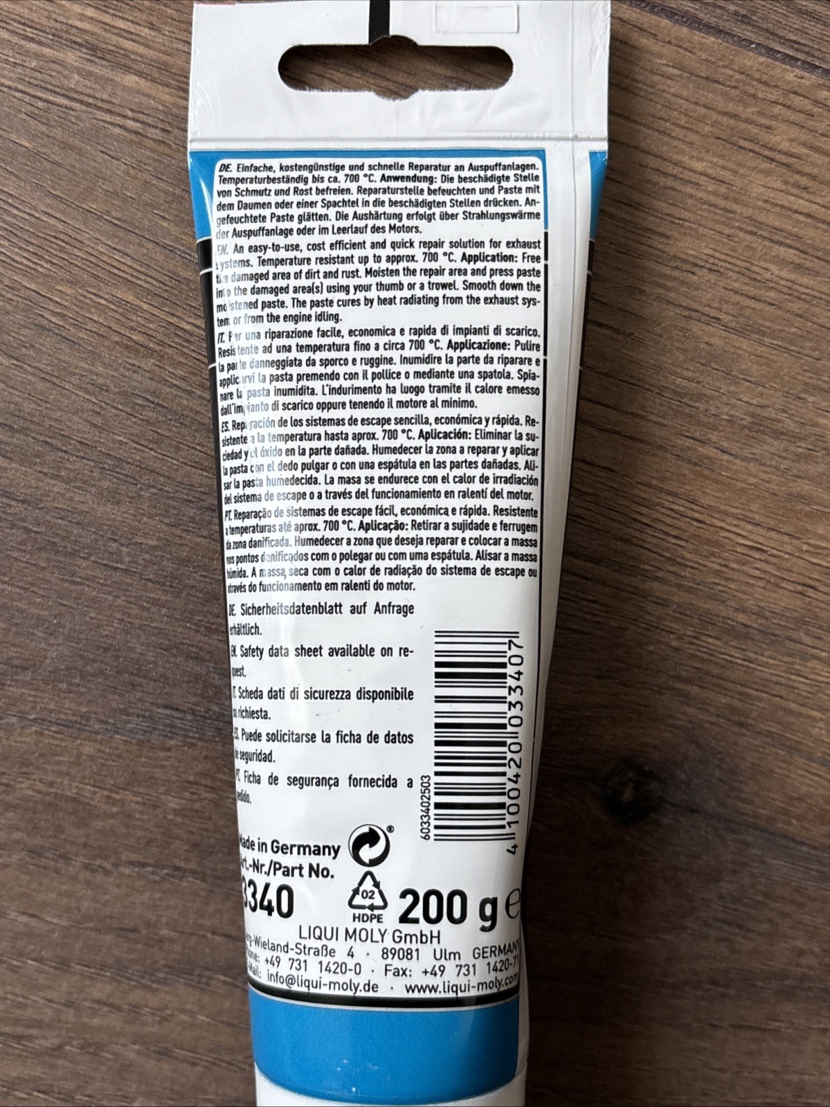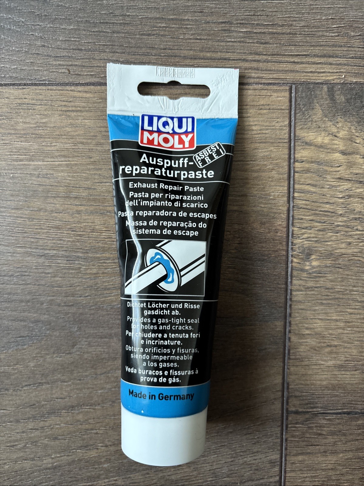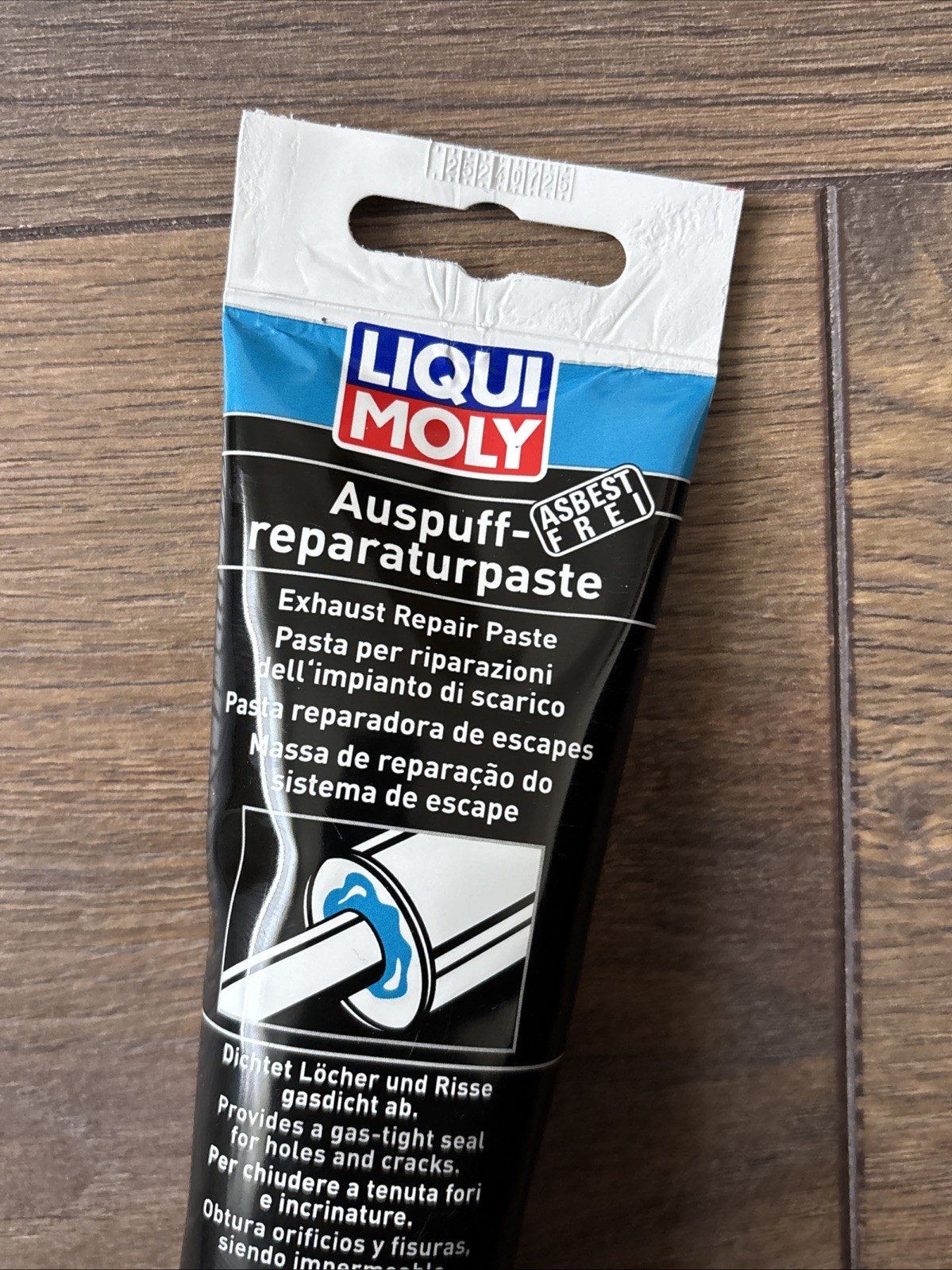 Für kleine Auspuffreparaturen. Für größere Reparaturen LIQUI MOLY-Auspuff-Bandage verwenden.