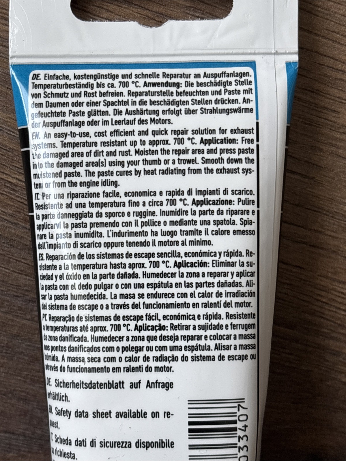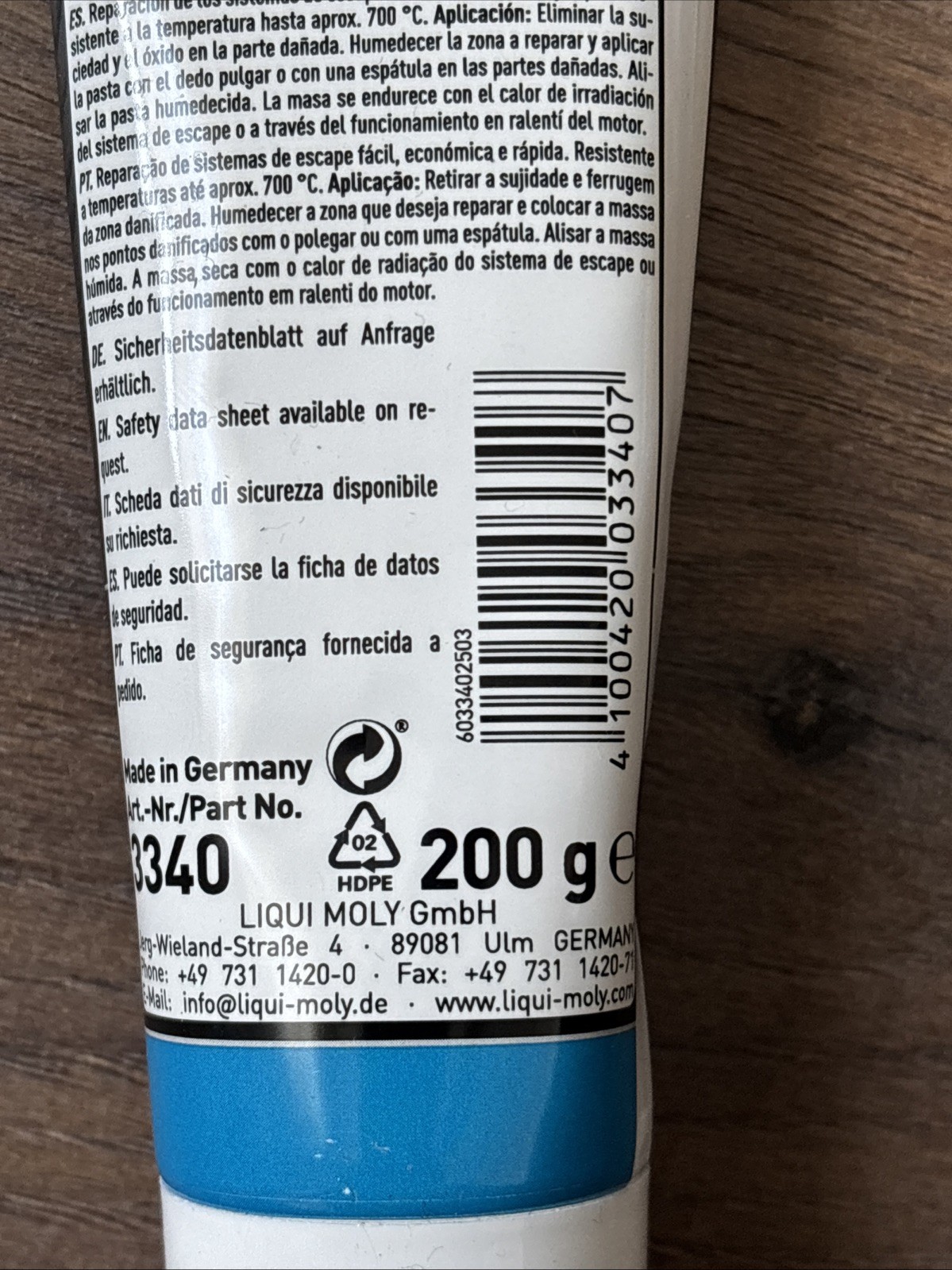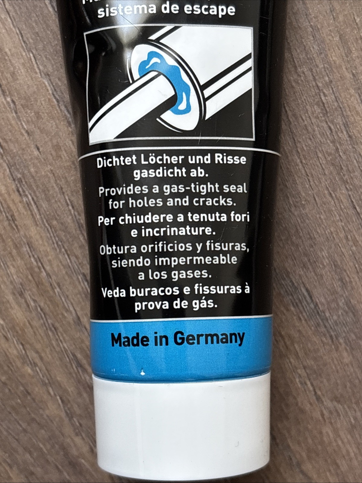 Für kleine Auspuffreparaturen. Für größere Reparaturen LIQUI MOLY-Auspuff-Bandage verwenden.