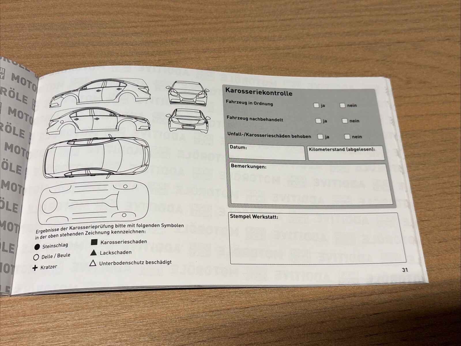 - Karosseriekontrolle, Zusatzseiten mit zusätzlichen Arbeiten.