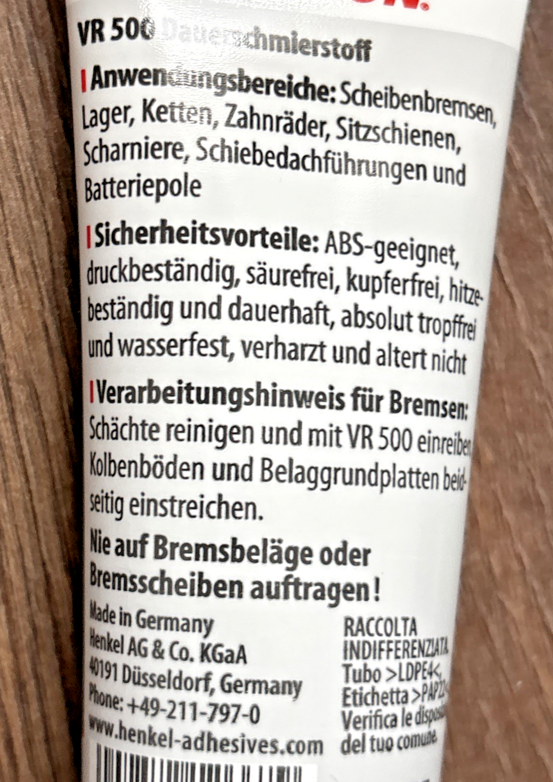 Teroson VR 500 Plastilube Dauerschmierstoff 35ml hochbelastbar Scheibenbremse – Anti-Quietsch-Paste – Montagepaste